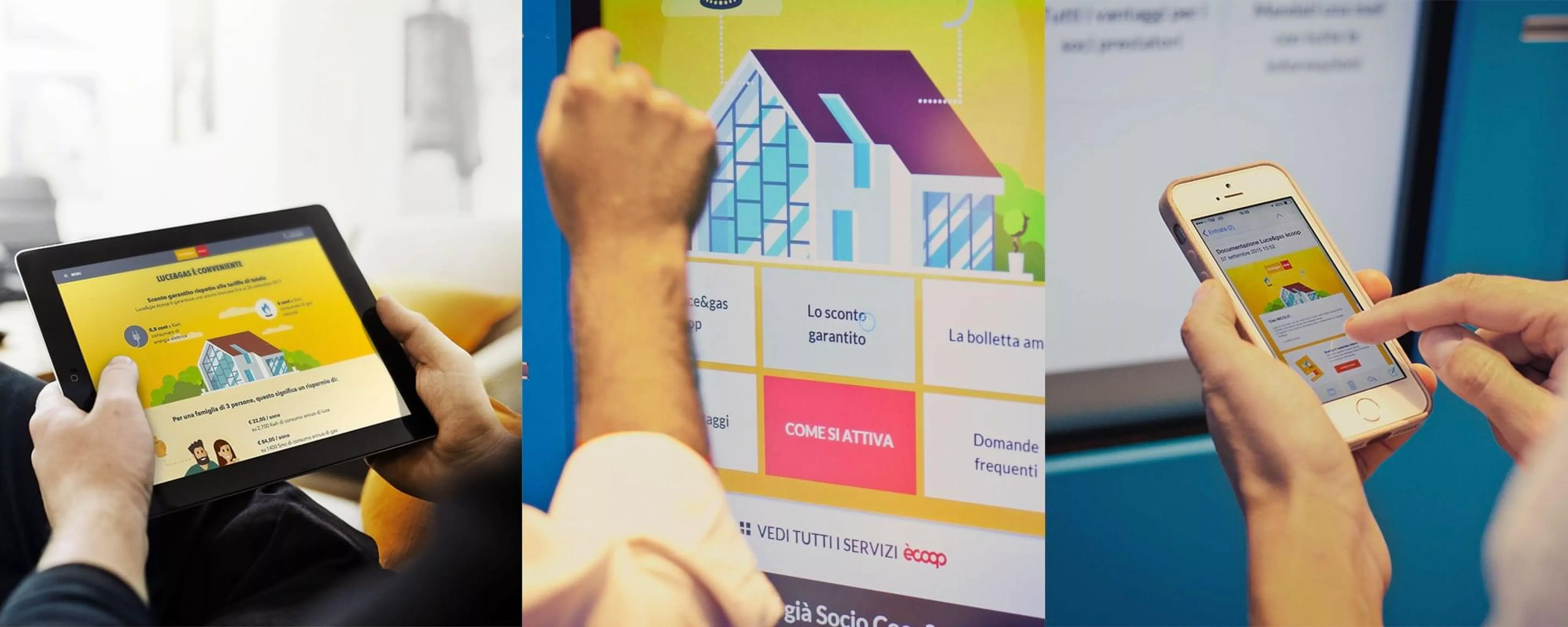 Capire quali contenuti presentare per Luce&Gas, Noi Salute, Prestito Sociale e Essere Soci da un punto di contatto così contestuale a un particolare momento della giornata è stata una delle fasi più importanti e critiche del progetto.La ricerca fatta nel mese di aprile e la roadmap di comunicazione, design e sviluppo condivisa hanno consentito a tutti i team di “ripulire” il backlog di funzionalità. In questo modo sono emerse quelle davvero attese nel punto vendita, mentre altre sono state riposizionate in altri touchpoint emergenti, nel rispetto delle stringenti milestone di progetto.Grazie a questo progetto, Coop Adriatica ha iniziato un nuovo percorso verso l’innovazione digitale, esperienza di cui farà tesoro durante la delicata fusione con Coop Estense e Coop Nord-Est in Coop Alleanza 3.0.