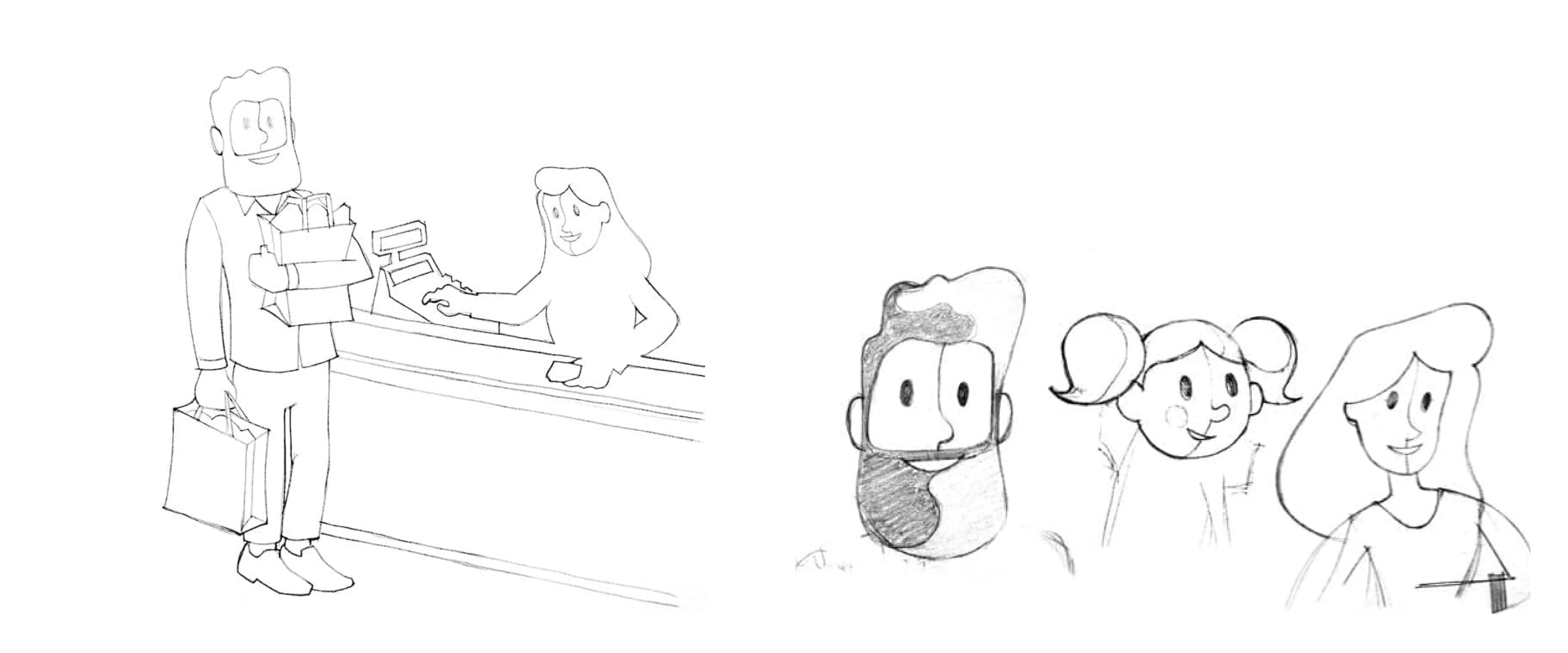 Dopo una prima di fase di studio, abbiamo deciso insieme a Kitchen e Coop Adriatica di creare dei personaggi per illustrare i diversi servizi ècoop: da un lato, la rappresentazione fotografica era già utilizzata ampiamente nei prodotti, nell’advertising e nelle pubblicazioni cartacee e serviva qualcosa di diverso; dall’altro, la foto avrebbe rappresentato in maniera troppo netta e riconoscibile un target demografico preciso, mentre il bacino di utenza dei servizi ècoop è estremamente ampio. Per questo abbiamo creato e disegnato una serie di personaggi, i nostri Soci Coop, e di ambientazioni da zero, per tutti i servizi.