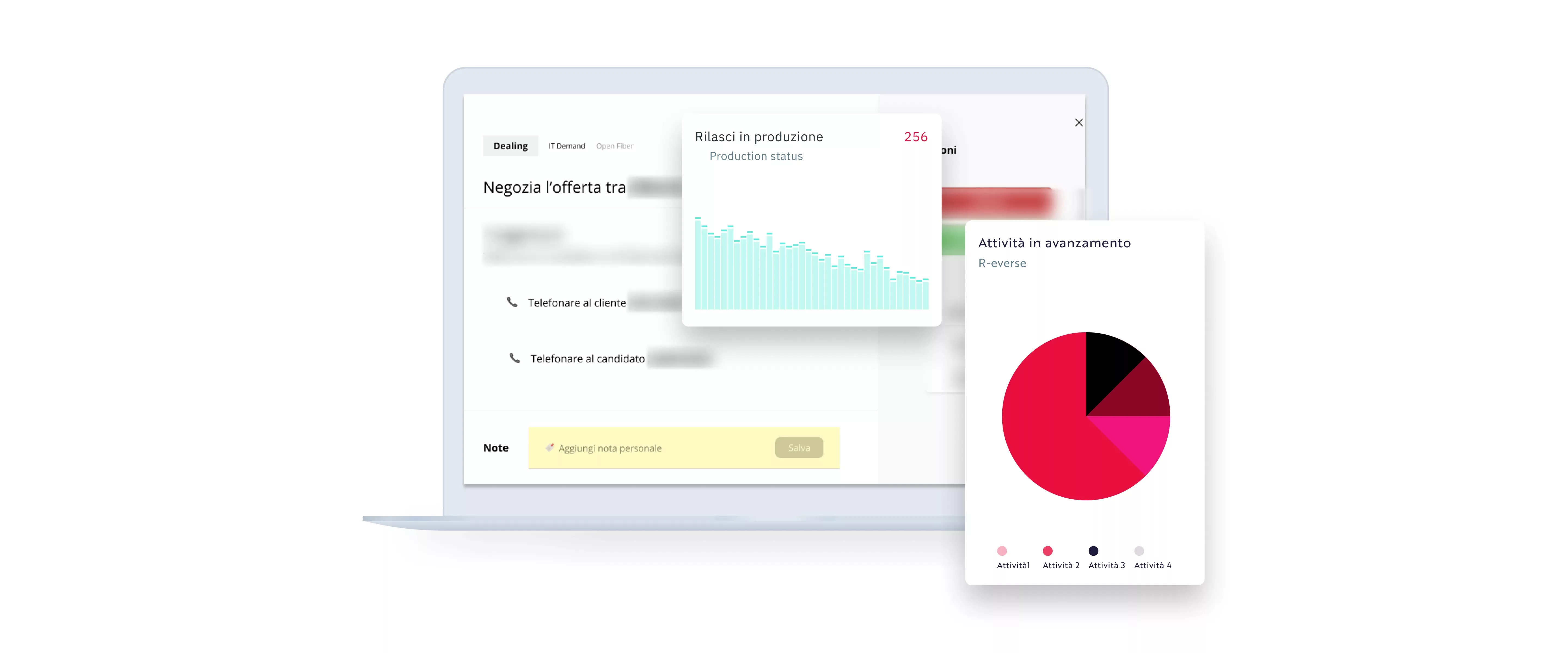 Da questo momento avevamo tutte le informazioni che ci servivano per generare idee e dare forma a uno strumento digitale che avrebbe dovuto rendere concreta la situazione to be. Abbiamo costruito gli scenari di base e su quelli abbiamo generato ipotesi di interfacce, funzioni e data visualization che abbiamo discusso prima tra noi, selezionato e poi presentato al team Reverse. Siamo rimasti sorpresi dalla cultura aziendale presente in Reverse fatta di di interesse, di partecipazione e di alta disponibilità.